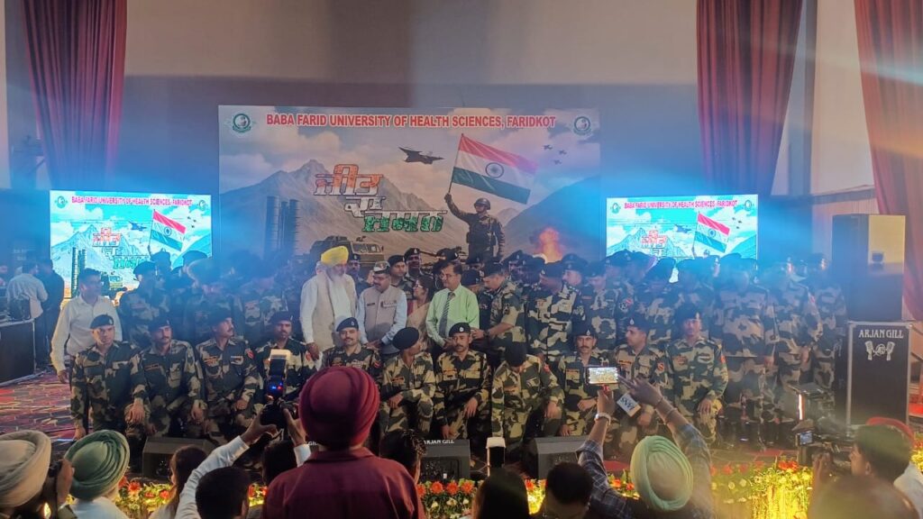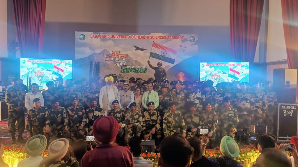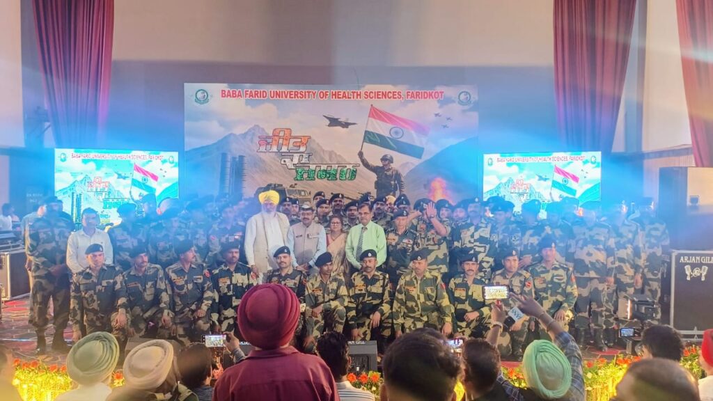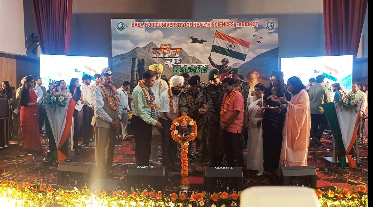 फरीदकोट: बाबा फरीद यूनिवर्सिटी ऑफ हेल्थ साइंसेज, फरीदकोट ने भारतीय सुरक्षा बलों की अद्वितीय बहादुरी, प्रतिबद्धता और शहादत को श्रद्धांजलि देने के उद्देश्य से गुरु गोबिंद सिंह मेडिकल कॉलेज, फरीदकोट के सभागार में एक विशेष देशभक्ति समारोह का आयोजन किया। इस आयोजन में देशभक्ति और एकता की भावना व्यक्त की गई। कार्यक्रम के दौरान मुख्य भाषण परमवीर चक्र से सम्मानित, कारगिल युद्ध के महान नायक मानद कैप्टन योगेश यादव ने दिया। उन्होंने अपनी विरासत की कहानी के माध्यम से युवाओं को देशभक्ति, सेवा और बहादुरी के लिए प्रेरित किया।