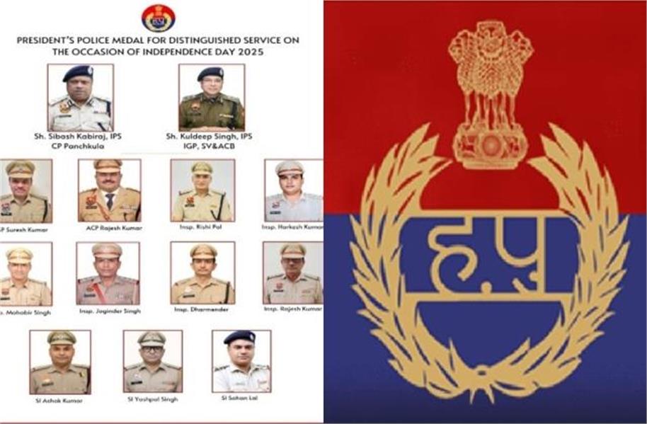 14 अगस्त 2025 : गृह मंत्रालय ने स्वतंत्रता दिवस पर पुलिस वीरता पदक, सराहनीय सेवाओं तथा विशिष्ट सेवाओं के लिए राष्ट्रपति पदक और अन्य पुरस्कारों की घोषणा की गई है। इसमें हरियाणा के 13  पुलिस अधिकारियों को वीरता पदक, विशिष्ट सेवाओं के लिए सम्मानित किया जाएगा। इसमें पंचकूला के सीपी IPS सुभाष सिबाश कबीराज, एसवी एंड एसीबी के आईजीपी आईपीएस कुलदीप सिंह के अलावा 11 अन्य पुलिस अधिकारी और जवान शामिल हैं।