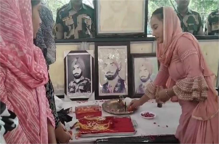 बमियाल/दीनानगर 19 अगस्त 2024 : राखी का त्योहार हर भाई-बहन के लिए बहुत महत्वपूर्ण त्योहार है। रक्षा बंधन पर बहन चाहे कहीं भी हो वह अपने भाई को राखी बांधने आती है, लेकिन फौजी भाई रक्षा कर रहे हैं। फौजी भाई देश की सरहदों पर अपने सख्त ड्यूटी के कारण अपनी बहनों से दूर हैं इसलिए जीरो लाइन पर स्थित सिंबल स्कोल गांव की महिलाओं ने फौजी भाइयों को राखी बांधी। वहीं शहीद परिवार सुरक्षा परिषद की ओर से उन्होंने अपने साथियों के साथ 1971 के युद्ध में शहीद हुए वायरलेस ऑपरेटर कंवलजीत के स्मारक पर राखी बांधी। 40 साल पहले शहीद की बहन की मौत के बाद भी यह सिलसिला जारी रहा।