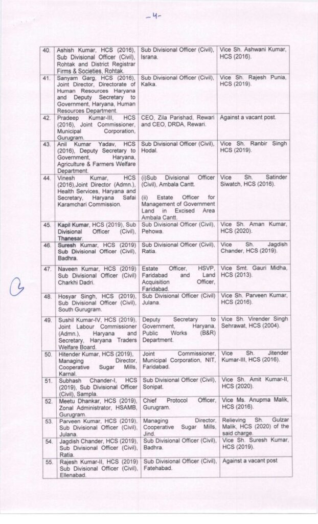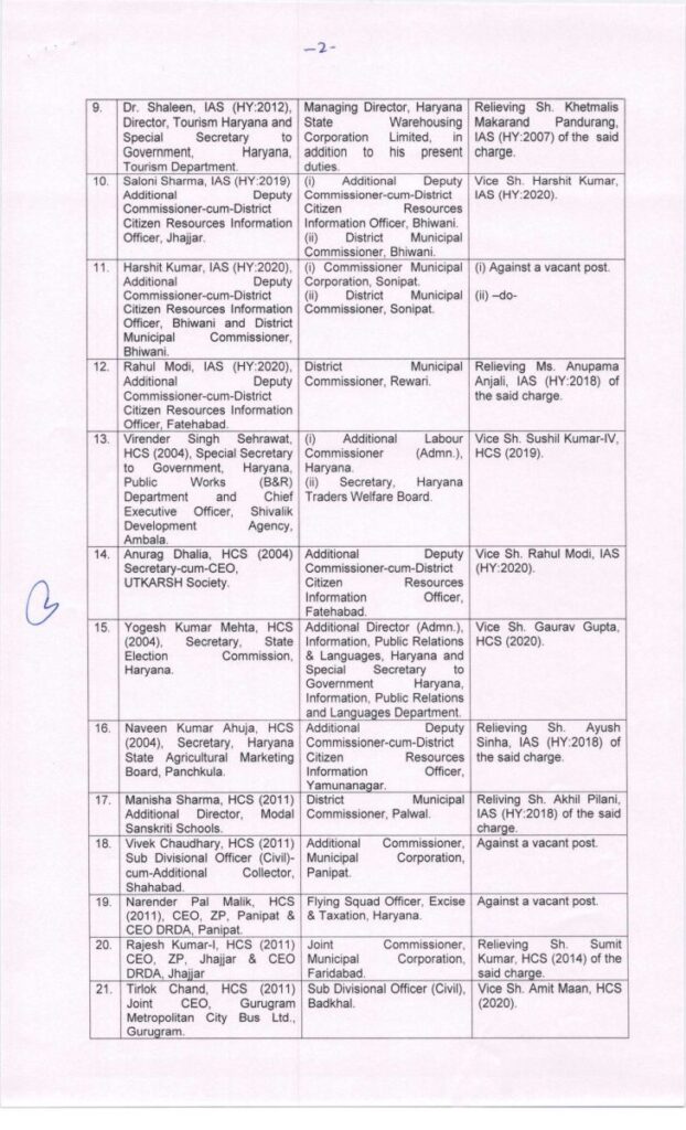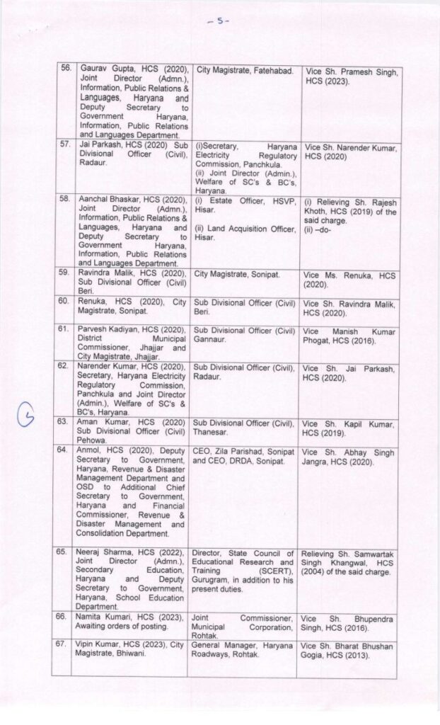 हरियाणा में प्रशासनिक बदलाव, 12 IAS और 67 HCS अधिकारियों के तबादले