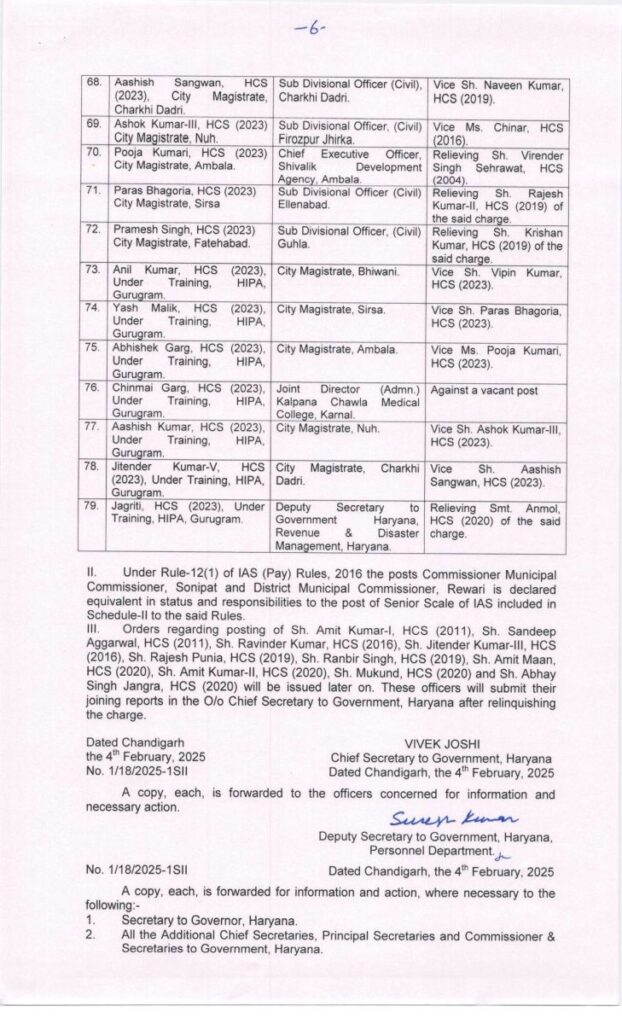 हरियाणा सरकार के इस बड़े प्रशासनिक बदलाव से राज्य की प्रशासनिक व्यवस्था को और अधिक प्रभावी बनाने की कोशिश की गई है।