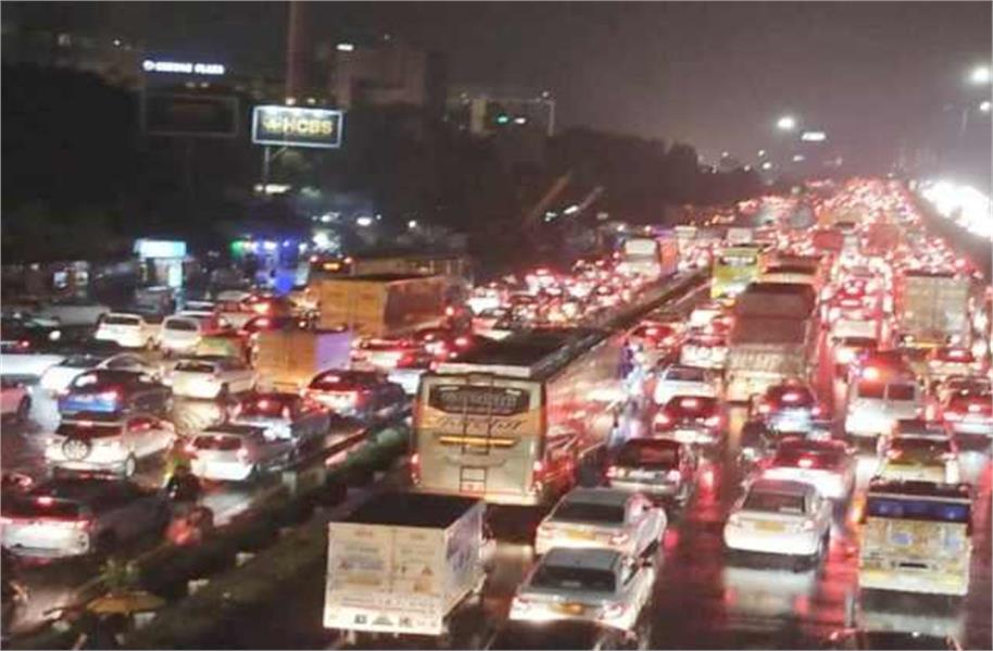 10 जुलाई 2025 : गुरुग्राम में बुधवार की रात मौसम ने अचानक करवट ली और जोरदार बारिश होने लगी। बारिश इतनी तेज थी कि दिल्ली-गुरुग्राम एक्सप्रेसवे पर नरसिंहपुर से रजोकरी बॉर्डर तक करीब 15 किलोमीटर लंबा भारी जाम लग गया। बारिश के कारण हाईवे जलमग्न हो गया, जिससे वाहनों की रफ्तार थम गई और ट्रैफिक रेंगता रहा। खासकर ऑफिस से घर लौट रहे लोगों को भारी दिक्कतों का सामना करना पड़ा, जो घंटों जाम में फंसे रहे।