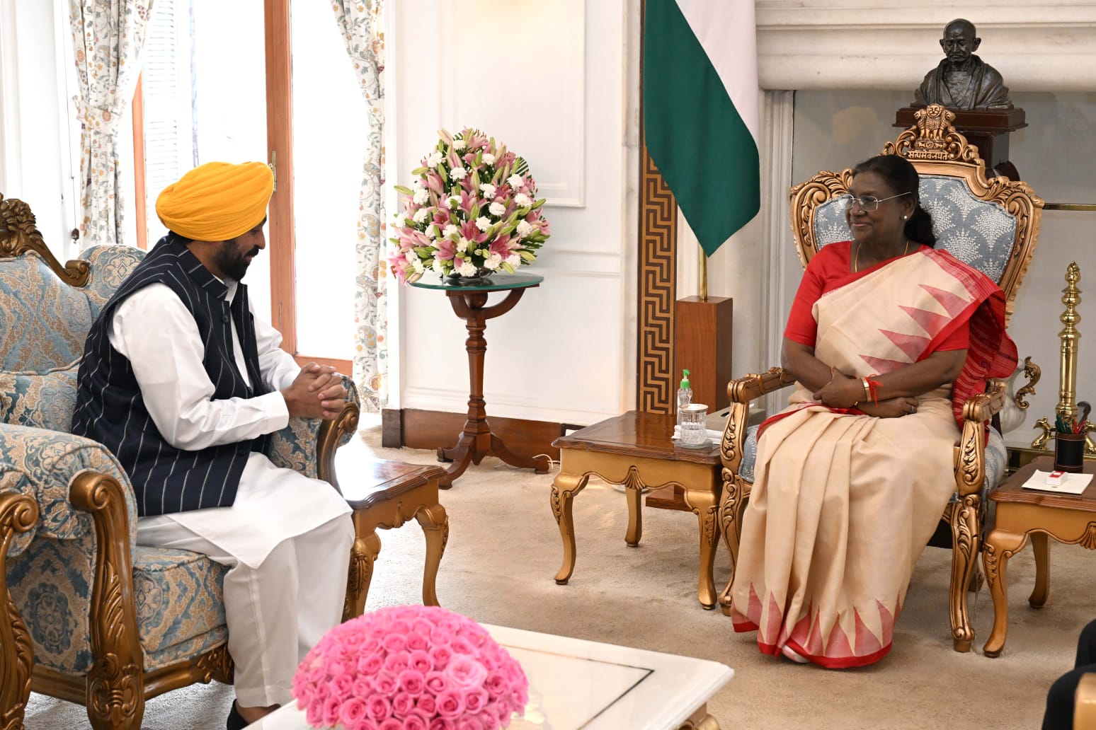 यहां राष्ट्रपति भवन में हुई बैठक के दौरान मुख्यमंत्री भगवंत सिंह मान ने भारत की राष्ट्रपति से अनुरोध किया कि वे इस ऐतिहासिक अवसर पर आयोजित पवित्र समारोहों में शामिल हों। उन्होंने बताया कि राष्ट्रपति द्रौपदी मुर्मू जी को इस ऐतिहासिक आयोजन का हिस्सा बनने का आग्रह किया गया है और उनके दौरे की रूपरेखा को जल्द ही अंतिम रूप दिया जाएगा। मुख्यमंत्री ने कहा कि इन समारोहों का विस्तृत कार्यक्रम राष्ट्रपति महोदया के साथ साझा कर दिया गया है और उनसे अनुरोध किया गया है कि वे अपनी सुविधा अनुसार इनमें शामिल हों।