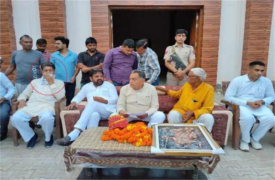 मंच पर मौजूद एक अन्य भाजपा नेता जगदीश भाटिया को रुमाल से अपना चेहरा छुपाते हुए कैमरे में कैद किया गया। गौरतलब है कि इसी जगदीश भाटिया और विधायक विनोद भयाना के भाई महेन्द्र भयाना के खिलाफ एक महिला ने रेप के आरोप लगाए थे। इन आरोपों को लेकर पहले भी मामला तूल पकड़ चुका है, लेकिन अब सरकारी मंच से ऐसे चेहरों की मौजूदगी ने प्रशासनिक और राजनीतिक हलकों में हलचल मचा दी है।