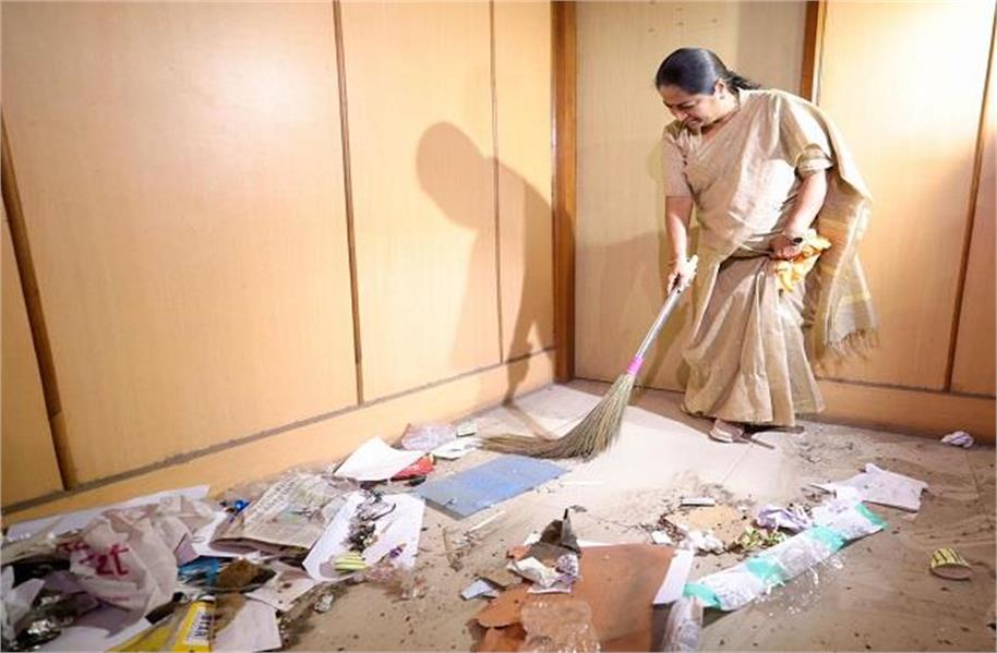1 अगस्त 2025 : मुख्यमंत्री रेखा गुप्ता ने शुक्रवार को दिल्ली सरकार के महीने भर चलने वाले स्वच्छता अभियान ‘दिल्ली को कूड़े से आज़ादी’ की शुरुआत झाड़ू लगाकर की। इस अभियान के दौरान उन्होंने महिला एवं बाल विकास विभाग का दौरा किया। कश्मीरी गेट स्थित विभागीय कार्यालय का निरीक्षण करते हुए रेखा गुप्ता ने चिंता व्यक्त की और कहा, “मैं इस कार्यालय में पहली बार आई हूं। यह देखकर बेहद दुःख होता है कि हमारे अधिकारी इस तरह की इमारत में काम करते हैं जहां पंखे किसी भी समय गिर सकते हैं और छत से पानी टपक रहा है।”