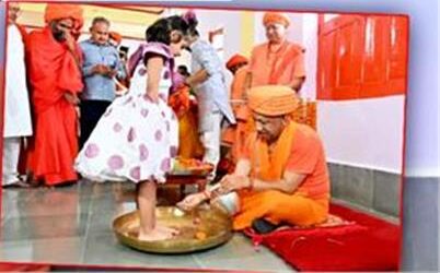 बता दें कि बुधवार को मुख्यमंत्री एवं गोरक्षपीठाधीश्वर योगी आदित्यनाथ ने मंदिर के अन्न क्षेत्र के प्रथम तल स्थित भोजन कक्ष में पीतल के परात में जल से नौ नन्ही बालिकाओं के बारी-बारी पांव धोये। दुर्गा सप्तशती के मंत्रोच्चार के बीच उनके माथे पर रोली, चंदन, दही, अक्षत आदि का तिलक लगाया। पुष्प और दुर्वा से उनका अभिषेक किया। माला पहनाकर, चुनरी ओढ़ाकर, उपहार एवं दक्षिणा प्रदान कर आशीर्वाद लिया। इस दौरान उन्होंने एक छह माह की बच्ची के भी पांव पखारे और पूजन कर आशीर्वाद लिया। मुख्यमंत्री ने हनुमानजी के वेश में आए एक बालक को भी तिलक लगाया और माला पहनाकर अंगवस्त्र ओढ़ाया। पूजन के बाद कन्याओं और बटुकों को मंदिर की रसोई में पकाया गया ताजा भोजन प्रसाद सीएम योगी ने अपने हाथों से परोसा। नौ कन्याओं के अतिरिक्त बड़ी संख्या में पहुंची बालिकाओं और बटुकों का भी मुख्यमंत्री ने पूजन कर आरती उतारी। सभी को श्रद्धापूर्वक भोजन कराकर उपहार व दक्षिणा दिया गया।