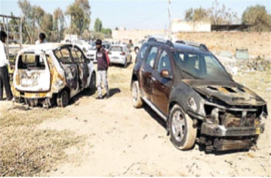 जानकारी के अनुसार तहसील कार्यालय के सामने कार बाजार बना हुआ है जहां पर एक दर्जन दुकानदार कारों की खरीद व फरोख्त का कार्य करते हैं शनिवार सुबह अचानक दुकानों के बाहर खड़ी हुई गाड़ियों में आग लग गई तो कार बाजार के बाहर चाय का काम करने वाले राजू नामक युवक ने इसकी सूचना तुरंत फायर ब्रिगेड को दे दी साथ ही गाड़ी के मालिक दुकानदारों को भी सूचना दे दी। इस दौरान राजवीर सिंह की रिट्ज गाड़ी, अमन की डस्टर गाड़ी जलकर पूरी तरह से राख गई व एक अन्य गाड़ी आग की चपेट में आ गई। आग लगने की सूचना मिलते ही दुकानदार भी सुबह ही मौके पर पहुंच गए।