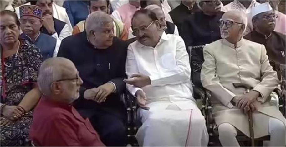 12 सितंबर 2025 : सीपी राधाकृष्णन ने शुक्रवार को भारत के 15वें उपराष्ट्रपति के रूप में शपथ ग्रहण की। राष्ट्रपति द्रौपदी मुर्मू ने उन्हें पद और गोपनीयता की शपथ दिलाई। यह शपथ ग्रहण समारोह के दौरान राष्ट्रपति भवन में पीएम नरेंद्र मोदी, गृहमंत्री अमित शाह, रक्षा मंत्री राजनाथ सिंह समेत और पूर्व उपराष्ट्रपति जगदीप धनखड़ भी मौजूद रहे। इस्तीफे के 53 दिनों धनखड़ पहली बार सार्वजनिक तौर पर नज़र आए। बता दें कि उन्होंने 21 जुलाई को स्वास्थ्य कारणों के चलते इस्तीफा दिया था। इस दौरान उनके साथ अन्य पूर्व उपराष्ट्रपतियों वेंकैया नायडू और हामिद अंसारी के बगल में बैठे थे।