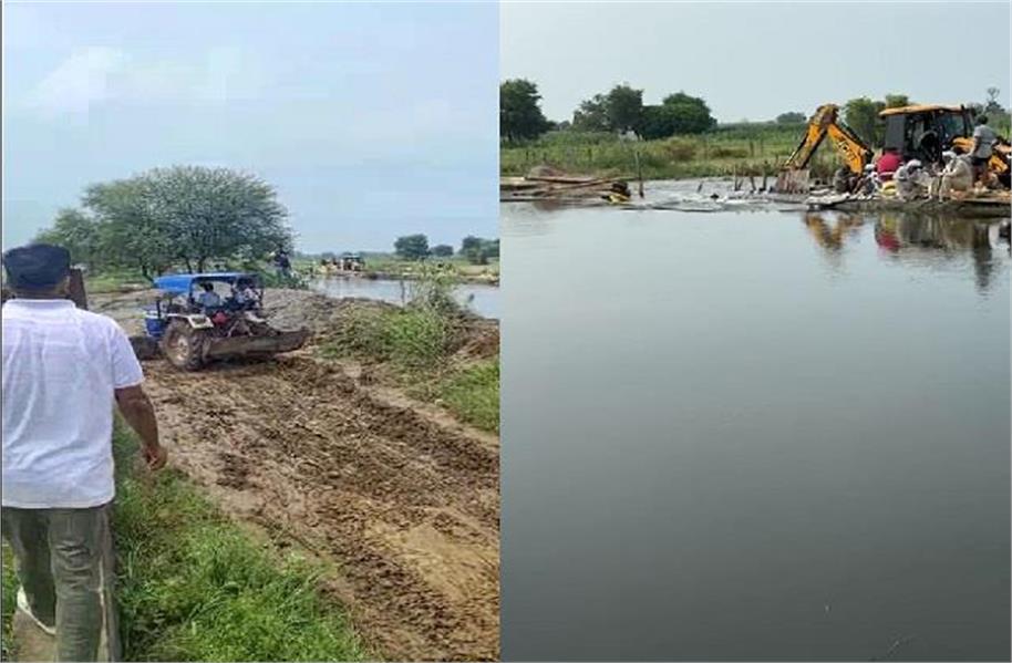 घग्गर ड्रेन को मिट्टी के कट्टे लगाकर पाटने का काम किया गया है। तीस फीट चौड़ा कटाव और पानी बहाव तेज होने से मिट्टी और बोरे ठहर नही पाए फिर से लगाए गए जेसीबी मशीन और पोकलेन मशीन की मदद की गई। ड्रेन में लकडी की बलिया लगाकर पानी के बहाव को कम किया गया। हिसार जिले में 55 प्रतिशत बारिश अधिक हो चुकी है ज्यादा बारिश का पानी ड्रेन में डाल दिया जाता था परंतु बारिश के कारण ड्रेने फुल चल रही है ।