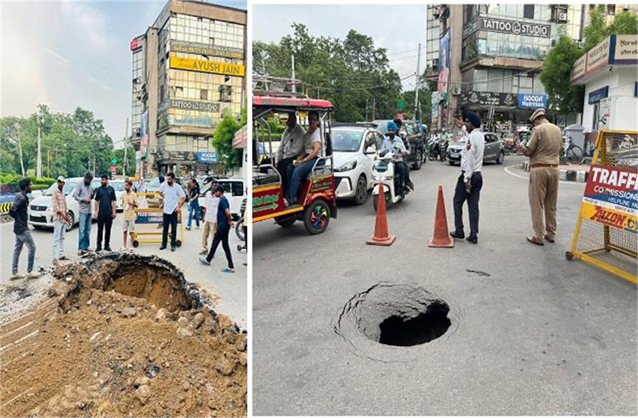 लुधियाना 05 अगस्त 2025 : महानगर में एक हफ्ते के भीतर सडकें धंसने की हैट्रिक हो गई है जिसके तहत अब फव्वारा चौक के नजदीक रोड के बीचोबीच गहरा गड्ढा पड़ गया। इस सीजन में सबसे पहले मामला पक्खोवाल रोड पर सामने आया, जहां गुरदेव नगर के नजदीक सड़क धंसने की वजह से लोगों को परेशानी का सामना करना पड़ा। इसके बाद मॉडल टाऊन के मिंटगुमरी चौक में लायलपुर स्वीट के नजदीक सड़क धंस गई जिसकी वजह से बंद हुई सड़क अब तक चालू नहीं हो पाई।