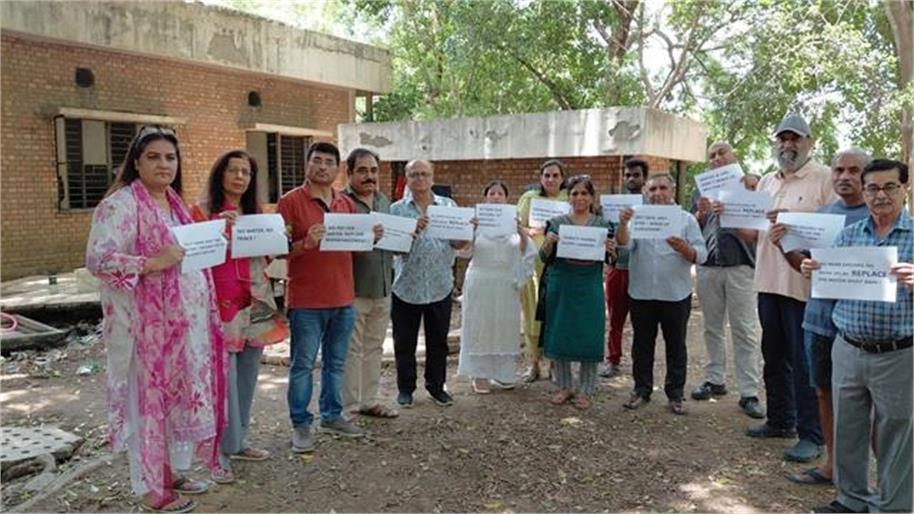 गुड़गांव, 11 जून 2025 : नगर निगम अधिकारियों के खिलाफ गुस्सा जाहिर करते यह लोग कोई और नहीं बल्कि ग्रीनवुड  सिटी के निवासी हैं। पिछले चार दिनों से बूंद बूंद पानी के लिए तरस रहे इन लोगों की दरकार को निगम अधिकारी सुनने के बाद भी अनसुना कर रहें हैं। लोगों की माने तो निगम अधिकारियों को केवल टैक्स वसूली का ही काम है, जनता को हाे रही समस्याओं की तरफ किसी का ध्यान नहीं है। यही कारण है कि आज लोगों को पीने के लिए पानी खरीदना पड़ रहा है। ग्रीनवुड सिटी के निवासियों मीनू, मनीषा, सीमा, बलजीत सिंह ने कहा कि लोगों की मेहनत की गाढ़ी कमाई का एक मोटा हिस्सा पानी के टैंकर खरीदने में खर्च हो रहे हैं। हैरत की बात यह है  कि क्षेत्र में पानी आपूर्ति की मोटर को खराब हुए चार हो गए हैं लेकिन निगम अधिकारियों ने इसे ठीक कराने की जरूरत तक नहीं समझी। अब मजबूरी में लोगों को अपने खर्च पर मोटर ठीक  करा रहे हैं।