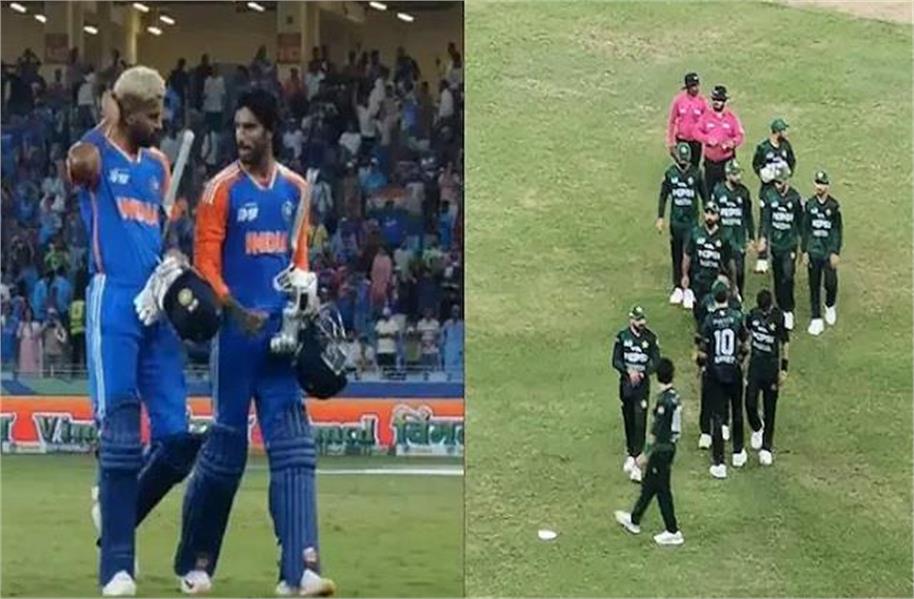 मैच खत्म होते ही टीम इंडिया के युवा बल्लेबाज तिलक वर्मा और ऑलराउंडर हार्दिक पंड्या बिना किसी पाकिस्तानी खिलाड़ी से मिले सीधे ड्रेसिंग रूम की तरफ चले गए। इसी तरह टीम के अन्य खिलाड़ी और सपोर्ट स्टाफ ने भी पाकिस्तान खिलाड़ियों से हाथ मिलाने से इंकार कर दिया।