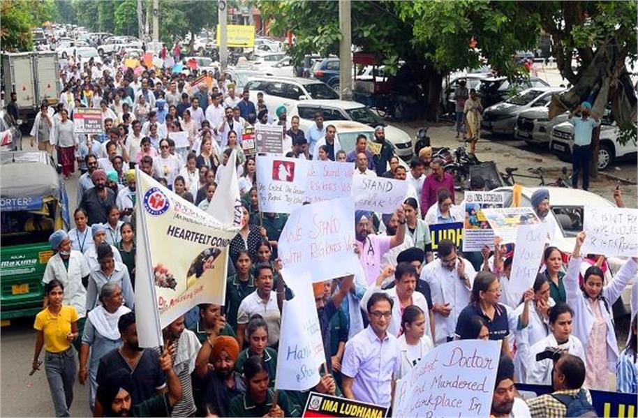 18 अगस्त 2024 : कोलकाता के आर.जी. कर मैडीकल कॉलेज एवं अस्पताल में द्वितीय वर्ष की पोस्ट ग्रैजुएट स्टूडैंट के साथ बलात्कार और हत्या के मामले में देशभर में डॉक्टरों में गहरा रोष है। इस सिलसिले में इंडियन मैडीकल एसो. के आह्वान पर सरकारी व निजी अस्पतालों में ओ.पी.डी. सेवाएं बंद रही सुबह लगभग 1000 से अधिक डॉक्टरों ने आई.एम.ए. हाऊस से फिरोजपुर रोड तक रोष मार्च किया और कोलकाता में हुए डॉक्टर के साथ दुर्भाग्यपूर्ण घटना में शामिल दोषियों को फांसी की सजा देने की मांग की आई.एम.ए. लुधियाना के अध्यक्ष डॉ. प्रीतपाल सिंह ने कहा कि यह पश्चिम बंगाल में बिगड़ती कानून व्यवस्था को दर्शाता है।