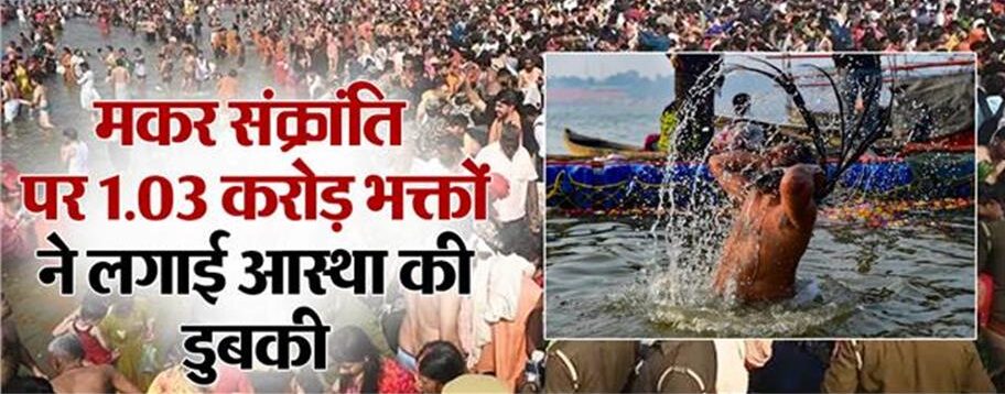 16 जनवरी 2026 : मकर संक्रांति के अवसर पर प्रदेश की विभिन्न धार्मिक शहरों में करोड़ों श्रद्धालुओं ने नदियों में आस्था की डुबकी लगाई। प्रयागराज में जारी माघ मेले में बृहस्पतिवार को मकर संक्रांति पर्व के अवसर पर शाम तक एक करोड़ से अधिक श्रद्धालुओं ने गंगा और संगम में स्नान किया। मेला प्रशासन के एक अधिकारी ने बताया कि बुधवार रात 12 बजे से ही स्नान शुरू हो गया था। पूरे दिन मकर संक्रांति का मुहूर्त रहने के कारण शाम तक करीब 1.03 करोड़ भक्तों ने गंगा और संगम में डुबकी लगाई। उन्होंने बताया कि बुधवार को एकादशी के अवसर पर लगभग 85 लाख श्रद्धालुओं ने गंगा और संगम में स्नान किया था।