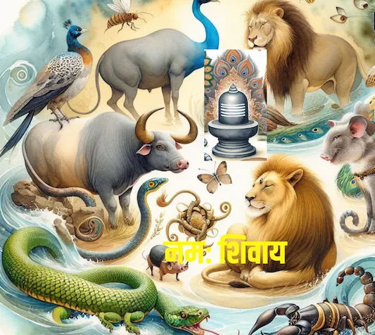 जिन जंगली जानवरों का समाज में आना ही डर पैदा कर देता है, वे सब शिवजी से लिपटे रहते हैं.बिच्छू उनके कानों में कुंडल की तरह लटकते हैं तो विषधर सांप दिव्य माला की तरह लिपटे रहते हैं.खुद बैल पर सवारी करते हैं तो उनकी पत्नी सती की सवारी शेर है.परिवार के बाहर होने पर बैल शेर का भोजन होता है.एक पुत्र गणेश चूहे की सवारी करते हैं तो दूसरे मोर की.मोर को खाने में सांप पसंद है और सांप चूहा खाकर संतुष्ट होता है.ये ऐसा परिवार है जहां शिकारी और शिकार एक साथ रहते हैं.सबका सह-अस्तित्व है.