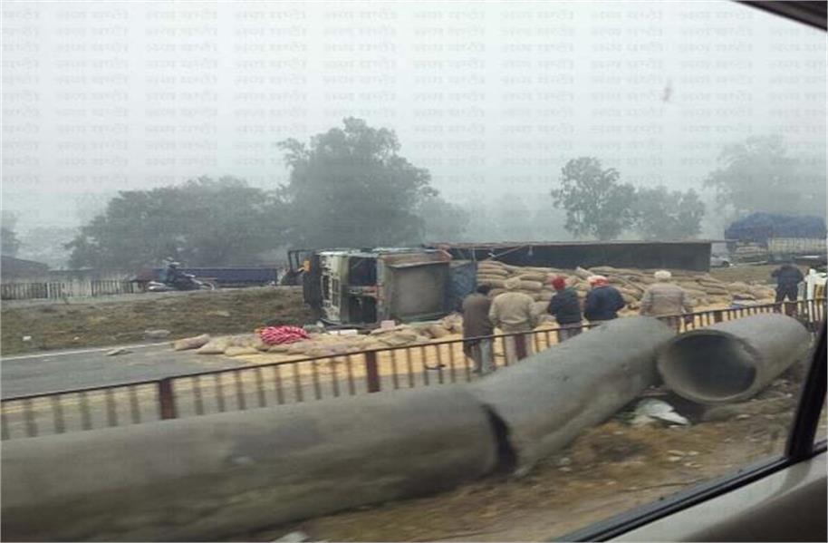 जालंधर 29 दिसंबर: जालंधर में एक बड़े हादसे की खबर सामने आई है। प्राप्त जानकारी के मुताबिक, रामा मंडी ब्रिज रेलवे स्टेशन के बाहर गेहूं की बोरियों से भरा एक ट्रक बीच सड़क पर पलट गया, जिसके कारण टेंपो ट्रैवल भी सड़क के बीच में पलट गया और मामले की जांच शुरू कर दी गई है।