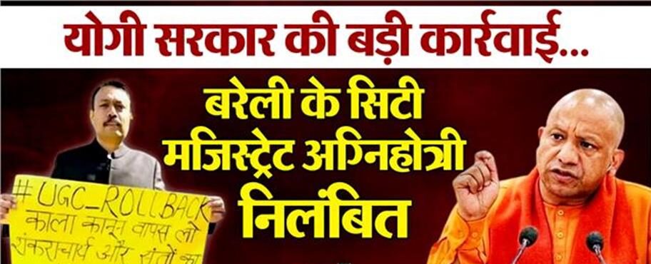बरेली 27 जनवरी 2026 : उत्तर प्रदेश सरकार ने एक बड़ी कार्रवाई करते हुए बरेली के नगर मजिस्ट्रेट अलंकार अग्निहोत्री को निलंबित कर दिया है। उन्हें शामली के कलेक्टर ऑफिस से अटैच किया गया है। मामले की जांच मंडलायुक्त बरेली को सौंपी गई है। बता दें कि इससे पहले उन्होंने सरकारी नीतियों विशेषकर विश्वविद्यालय अनुदान आयोग (यूजीसी) के नए नियमों और शंकराचार्य अविमुक्तेश्वरानंद से जुड़े मामले पर नाराजगी जताते हुए सोमवार को सेवा से इस्तीफा दे दिया। उनके इस्तीफा ने पूरे प्रदेश के प्रशासनिक वर्ग में खलबली मचा दी थी। जिसके बाद योगी सरकार ने एक्शन लेते हुए उन्हें निलंबित कर दिया है।