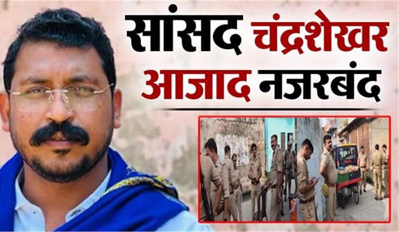 सांसद को छुटमलपुर स्थित उनके आवास पर ही डिटेन कर लिया है। जानकारी के मुताबिक, बुधवार रात करीब 12 बजे चंद्रशेखर पुरकाजी से अपने छुटमलपुर स्थित आवास पहुंचे थे। उनके ऐलान के बाद पुलिस अलर्ट मोड पर आ गई और इसके तुरंत बाद पुलिस बल मौके पर पहुंच गया और उनके आवास पर तैनात हो गया। सुबह होते-होते जिले के सात थानों की पुलिस छुटमलपुर पहुंच गई और हरिजन कॉलोनी स्थित उनके आवास जाने वाले सभी रास्तों पर बैरिकेड्स लगाकर निगरानी शुरू कर दी गई। पुलिस की कोशिश है कि सांसद किसी भी तरह बरेली न पहुंच पाए।