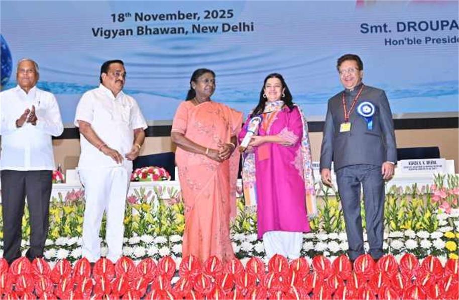 हरियाणा 18 नवंबर 2025 नई दिल्ली के विज्ञान भवन में आयोजित 6वें राष्ट्रीय जल पुरस्कार समारोह में हरियाणा को तीसरा स्थान मिला है। राष्ट्रपति द्रौपदी मुर्मू ने समारोह में सिंचाई एवं महिला बाल विकास मंत्री श्रुति चौधरी को सम्मानित किया और उन्हें प्रशस्ति पत्र प्रदान किया। इस मौके पर मंत्री के साथ विभाग के Additional Chief Secretary एवं EIC मौजूद रहे।