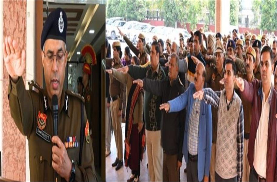 चंडीगढ़ 24 जनवरी 2025 : भारत निर्वाचन आयोग के निर्देशानुसार आज 15वें राष्ट्रीय मतदाता दिवस के उपलक्ष्य में पुलिस मुख्यालय में शपथ ग्रहण कार्यक्रम आयोजित किया गया। 25 जनवरी को अवकाश के चलते पुलिस महानिदेशक शत्रुजीत कपूर द्वारा राज्य सरकार के आदेशानुसार आज शुक्रवार को पुलिस मुख्यालय में उपस्थित अधिकारियों व कर्मचारियों को मतदाता शपथ दिलवाई गई।