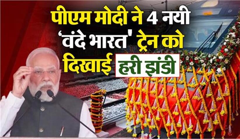 वाराणसी 08 नवंबर 2025 : प्रधानमंत्री नरेन्द्र मोदी ने भारत की आधुनिक रेल अवसंरचना के विस्तार की दिशा में एक महत्वपूर्ण कदम के तहत वाराणसी में चार नयी ‘वंदे भारत एक्सप्रेस’ ट्रेन को हरी झंडी दिखाकर रवाना किया। अपने संसदीय क्षेत्र वाराणसी के दो दिवसीय दौरे के दूसरे एवं अंतिम दिन मोदी ने बनारस रेलवे स्टेशन पर चार नयी वंदे भारत एक्सप्रेस ट्रेन को हरी झंडी दिखाकर रवाना किया। ये नयी ट्रेन बनारस-खजुराहो, लखनऊ-सहारनपुर, फिरोजपुर-दिल्ली और एर्नाकुलम-बेंगलुरु मार्गों पर चलेंगी।