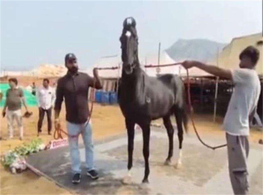 खरड़ 29 अक्टूबर 2025 : राजस्थान के अजमेर जिले का अंतरराष्ट्रीय पुष्कर पशु मेले में इस बार प्रीमियम घोड़े ने शान बढ़ा दी है। मारवाड़ी नस्ल के ऊंचे कदम और चमकदार काली त्वचा वाला काला घोड़ा बड़ा आकर्षण का केंद्र रहा।