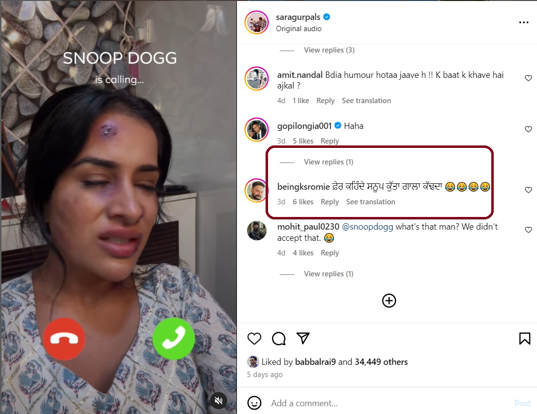 दरअसल जब इस वीडियो को पूरा देखा गया तो फैंस ने इस पर अपना गुस्सा भी जाहिर किया। एक यूजर ने सारा के इस हरकत पर कमेंट करते हुए लिखा, ”मानसिक स्वास्थ्य महत्वपूर्ण है। कृपा करके अपने आप को किसी मनोवैज्ञानिक से जांच करवाओं”। इसके अलावा एक और यूजर ने लिखा, ” फिर कहते सनूप कुत्ता गाला कडदा…. ।