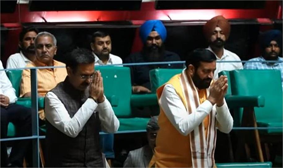 पंजाब 25 मार्च 2025 : पंजाब विधानसभा के बजट सत्र के तीसरे दिन की कार्यवाही शुरू हो गई है। कल सदन में हुई कार्यवाही हंगामे से भरी रही। इस बीच आज हरियाणा के मुख्यमंत्री नायब सिंह सैनी और हरियाणा विधानसभा स्पीकर हरविंदर कल्याण पंजाब विधानसभा की कार्यवाही देखने के लिए पहुंचे हैं।