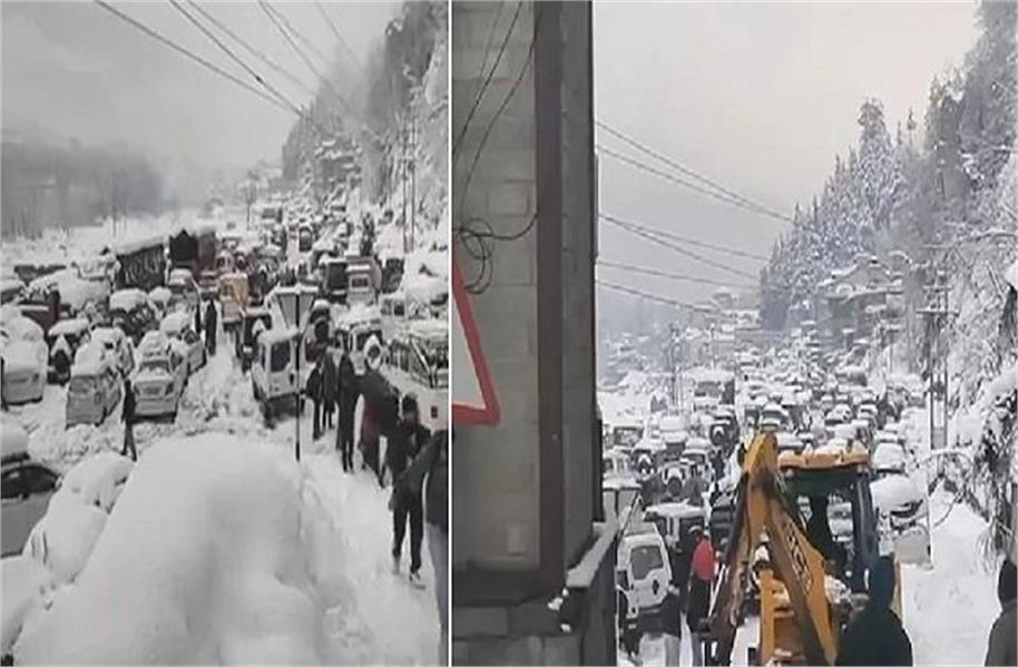 बर्फबारी की खबर मिलते ही बड़ी संख्या में पर्यटक मनाली पहुंच गए, लेकिन सड़कों पर बर्फ जमने और वाहनों की संख्या बढ़ने से हालात बिगड़ गए।