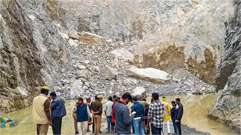 सोनभद्र में पहाड़ी धंसने से दो की मौत, पंद्रह से अधिक दबे