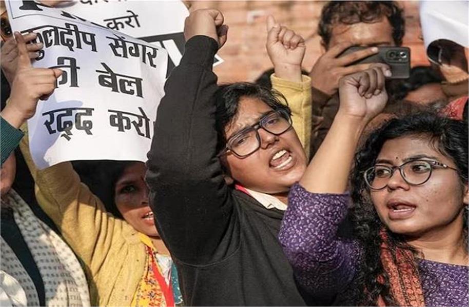 29 दिसंबर 2025 : उन्नाव के 2017 के दुष्कर्म मामले की पीड़िता, उसके परिवार और कार्यकर्ताओं ने भारतीय जनता पार्टी (भाजपा) के पूर्व विधायक कुलदीप सिंह सेंगर की उम्रकैद की सजा दिल्ली उच्च न्यायालय द्वारा निलंबित किए जाने के खिलाफ रविवार को दिल्ली के जंतर-मंतर पर विरोध प्रदर्शन किया। अधिकारियों से सख्त जवाबदेही की मांग करते हुए, विरोध प्रदर्शन के दौरान मौजूद पीड़िता ने कहा कि उनके परिवार को और सुरक्षा प्रदान की जानी चाहिए। उन्होंने कहा, “मैं मुख्यमंत्री से हमें सुरक्षा देने का अनुरोध कर रही हूं। ये लोग शक्तिशाली हैं। कृपया अपनी बेटी को बचाएं। मेरे पति को नौकरी से निकाल दिया गया था। हम बेरोजगार हैं, हम कहां जाएंगे?” प्रदर्शनकारियों ने दोषी के प्रति दिखाई गई कथित अनुचित नरमी के खिलाफ नारे लगाए और तर्क दिया कि अब तक की गई कार्रवाई सार्वजनिक उम्मीदों से कम रही है। पीड़िता की मां ने कहा कि उन्हें उच्चतम न्यायालय पर भरोसा है और उम्मीद है कि इस मामले में न्याय मिलेगा।
