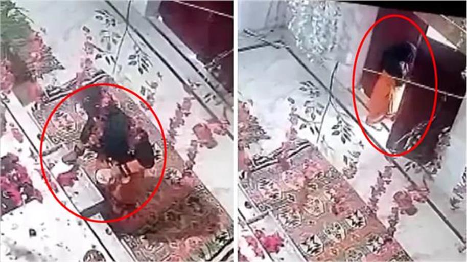 CCTV फुटेज में देखा गया कि एक महिला श्रद्धालु बनकर मंदिर में दाखिल हुई और मौके का फायदा उठाकर बड़ी चालाकी से चांदी की खड़ाऊं उठाकर फरार हो गई। महिला ने अपना चेहरा ढंका हुआ नहीं था, जिससे उसकी पहचान करना आसान हो सकता है।
